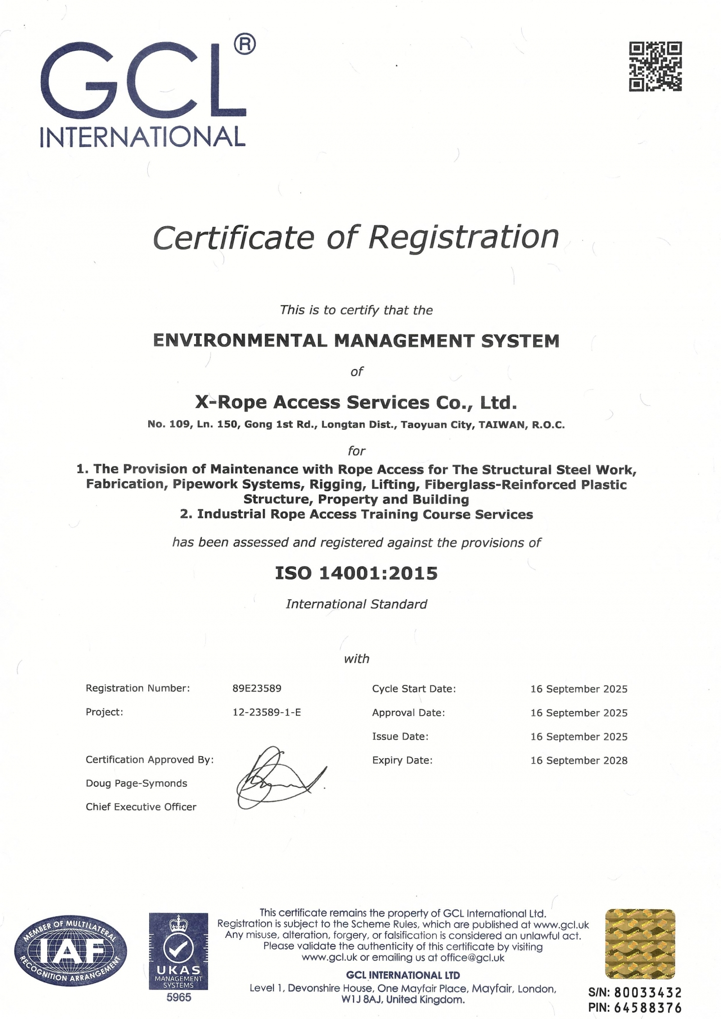 極限國際工程有限公司於2025年9月榮獲ISO 9001:2015、ISO 14001:2015及ISO 45001:2018三項國際驗證,現榮幸宣布本公司於本日通過ISO 9001:2015之第三方稽核。