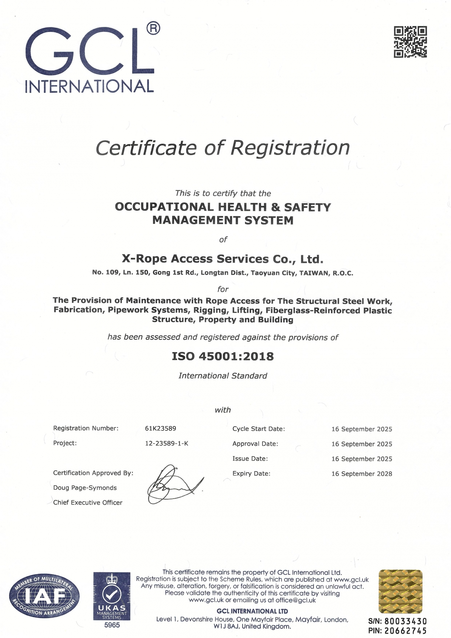 極限國際工程有限公司【X-Rope Access Services Co., Ltd.】自2010年成立以來,一直在高空工業繩索技術作業【Rope Access Works】的領域中穩定發展,項目包含了工業繩索技術工程服務、工業繩索技術培訓及高空作業安全裝備諮詢經銷。